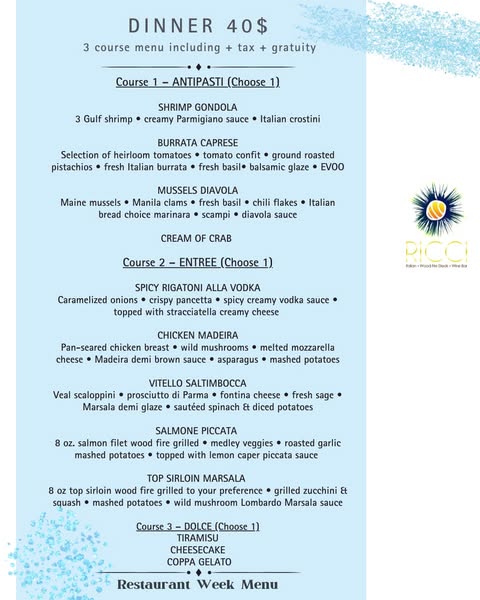 Ricci Italian Restaurant invites you to savor the elegance of our specially curated Restaurant Week Menu, available for both, lunch and dinner. Enjoy an exceptional dining experience featuring exquisite dishes at a truly remarkable value. 🍷🍴