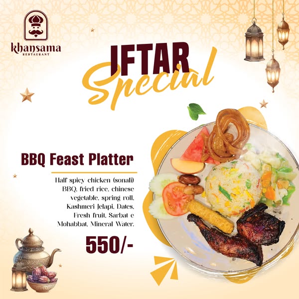 搜索关键词 Ramadan Iftar Dhaka, Khansama Restaurant, Budget-friendly Iftar, Ramadan meal platters, Dhaka restaurant offers, Iftar special offers, Naya Paltan restaurant, Bangladeshi Iftar, Iftar reservations, Ramadan dining experience优势 Budget-friendly price,Wholesome and fulfilling Iftar meals,Variety of flavors, from classic to indulgent,Convenient location in Dhaka
