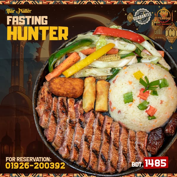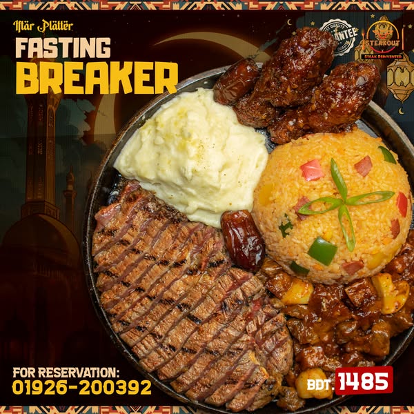 搜索关键词 Ramadan Iftar, Steakout Restaurant, Iftar Platters, Dhaka Food, Banani Restaurant, Dhanmondi Restaurant, Special Ramadan Menu, Succulent Meats, Hearty Sides, Bangladesh Food优势 Special Ramadan Iftar menu,Succulent meats and hearty sides,Multiple platter options