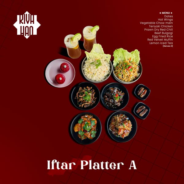 搜索关键词 Ramadan Iftar platters, Kiva Han restaurant, family dinner, dine in offer, break fast, restaurant reservation, gulshan restaurant, uttara restaurant, delicious meals, prayer spots优势 Special Ramadan offering,Perfect for sharing with family and friends,Convenient reservation options,Parking and prayer spots available