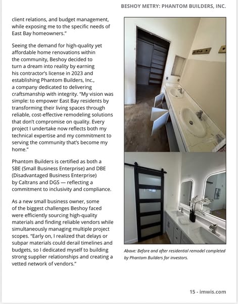 The Contractor report from Alameda County newspapers, The formal Alameda County magazine has published Phantom Builders Achievements on the first Page.