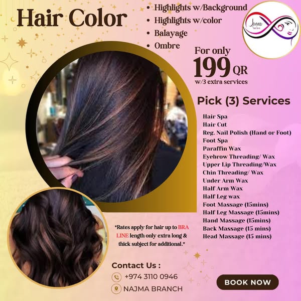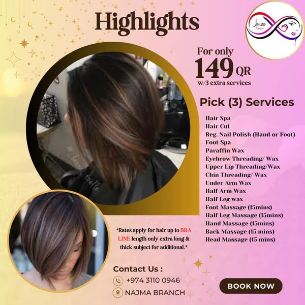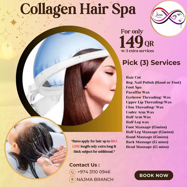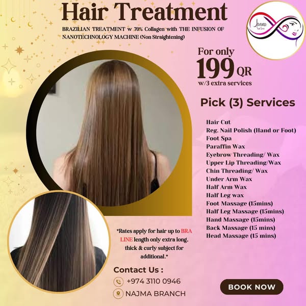 Be treated like a Queen 👸🏻 Starting at ONLY QAR 120, you’ll get to pay ONLY one major service and get 3 more services absolutely for FREE!!