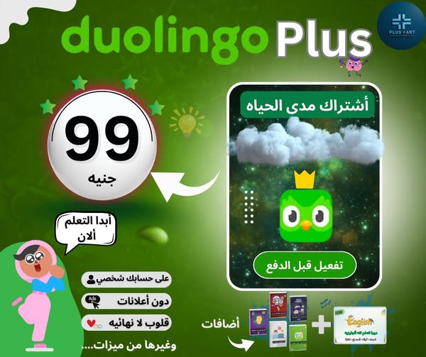 🌟 تعلم لغات جديدة مع أشتراك مدى الحياة مع Duolingo Plus بسعر (99) جنيه فقط