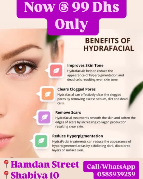 👉Hydra Facial 99 Dhs