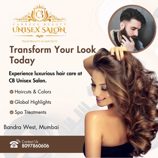 搜索关键词 unisex salon Mumbai, beauty salon Khar, hair styling Mumbai, carezza beauty salon, best salon services, walk in salon, affordable salon, beauty treatments Mumbai, unisex hair cuts, Khar West salon优势 Convenient location in Khar West, Mumbai,Unisex services cater to a wide audience,Direct call to action with phone numbers and website