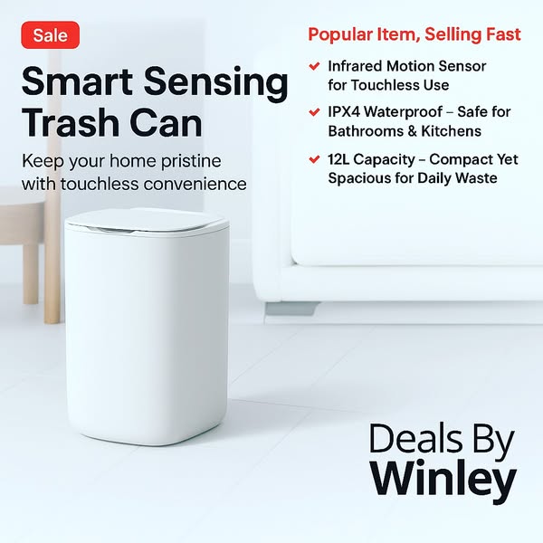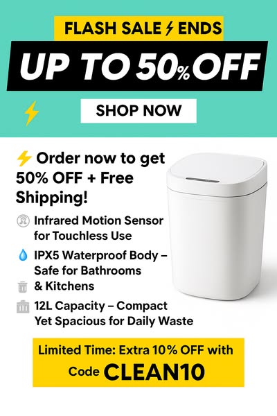 搜索关键词 touchless trash can, kitchen garbage bin, automatic trash can, hygienic garbage, home appliances, discount sale, early bird offer, hands free, 50 percent off, motion sensor trash can优势 Hygienic (touchless),Discounted Price (50% OFF),Limited-Time Offer (early bird bonus)