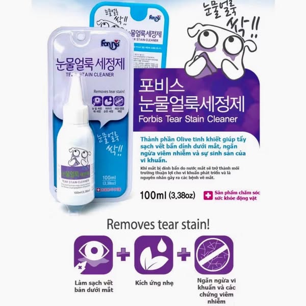 搜索关键词 pet eye cleaner, dog eye care, cat eye care, tear stain removal, gentle eye solution, Forcans eye cleaner, Boss City pet shop, pet grooming supplies, Vietnam pet products, healthy pet eyes优势 Gentle and pH balanced formula,Removes eye stains, dirt, and limits yellowing,Natural extracts for antibacterial and moisturizing effects,Safe for dogs and cats, especially breeds prone to tear stains,Regular use promotes bright, healthy eyes