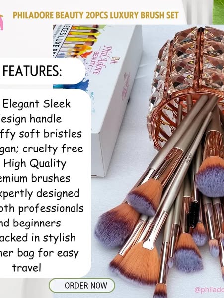 Introducing the Philadore Beauty 20-Piece Brush Set – a full collection of ultra-soft, pro-level brushes, beautifully packed with a stylish purse for your on-the-go glam 💄💼