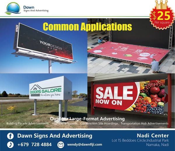 搜索关键词 UV printing services, custom vinyl banners, high-resolution banners, advertising banners, outdoor advertising, banner printing fiji, Dawn Signs and Advertising, advertisement design, advertisement agency, advertisement services优势 High-resolution UV printing,Vibrant colors and durability,Weather resistance,Customer-centric approach,Cost-effective solutions