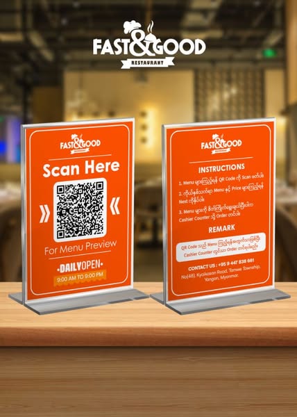 အကြာကြီး တန်းစီစရာမလိုရအောင် QR Scan ဖတ်ပြီး ကိုယ်ကြိုက်နှစ်သက်ရာ Menu & Price များကို ကြိုတင် ကြည့်နိုင်ပြီး Counter တွင် Order တင်နိုင်ပါတယ်✨️