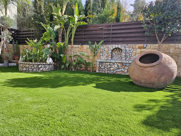 ➡️ Υψηλής ποιότητας συνθετικό γρασίδι που προσφέρει φυσική όψη, υψηλή αντοχή και εύκολη συντήρηση. 🏡💚