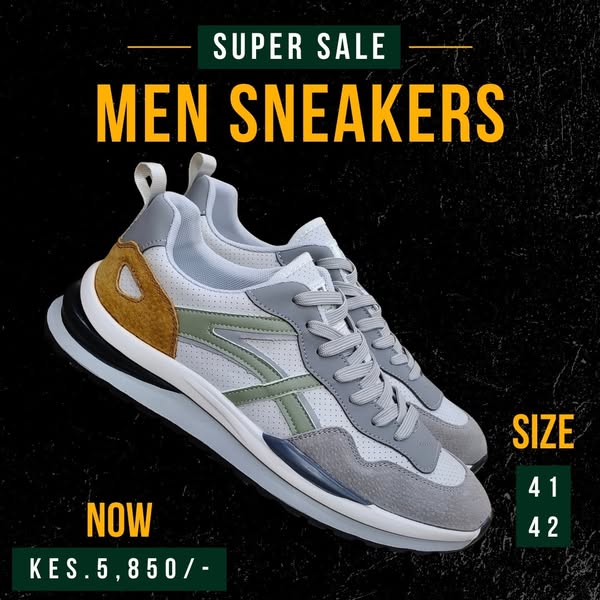 搜索关键词 men sneakers sale, trendy men footwear, comfortable sneakers, Gdee's Footwear, discounted sneakers, countrywide delivery, stylish sneakers, men's fashion shoes, Marsabit Plaza, affordable footwear优势 Trendy designs,Comfortable fit,Stylish appearance,Discounted price (10% OFF),Wide availability of designs and sizes,Countrywide delivery