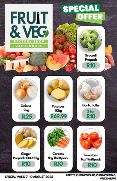 搜索关键词 fresh produce deals, affordable farm produce, budget friendly packs, local seasonal, fruit and vegetable shop, Vredenburg food store, cheap vegetables, fresh fruit deals, farm fresh quality, Factory Shop Savings优势 Affordable prices,Farm-fresh produce,Budget-friendly bulk packs,Local and seasonal goodies