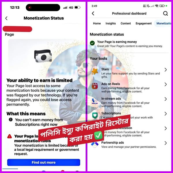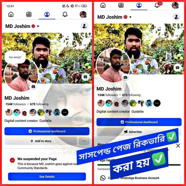 ৭/সাসপেন্ড পেজ , পলিসি ইসু রিমুভ করা হয় ,হ্যাক হয়ে যাওয়া পেজ রিকভারি করা হয় ✅