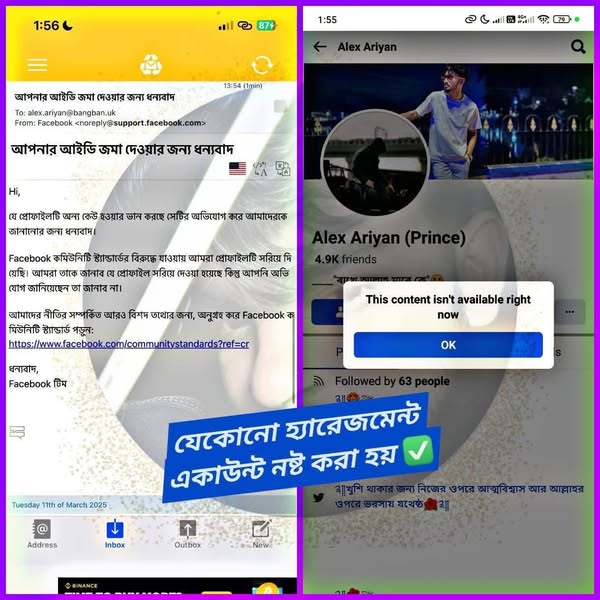 ৫/হ্যারেজমেন্ট একাউন্ট রিমুভ করা হয় ✅