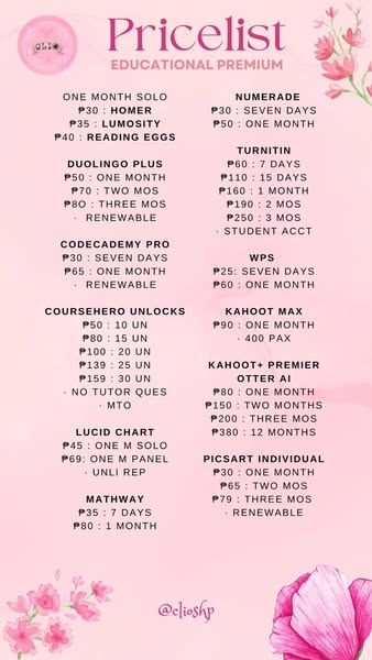 Are you looking for affordable and reliable premium accounts? Look no further! Clio 🩷, a trusted seller in the market, is offering unbeatable prices starting from just ₱30. Whether you need access to streaming services, software subscriptions, or any other premium accounts, we've got you covered.