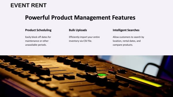 Event-Rent.co.uk is a new platform designed specifically for the event rental industry. As a central hub for equipment hire, we offer innovative solutions to streamline your rental operations, connect you with a wider customer base, and ensure the safekeeping of your valuable assets.