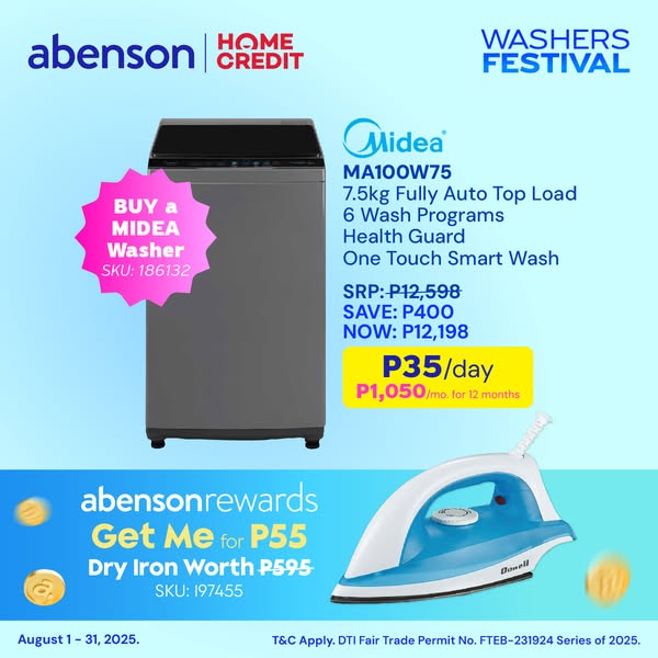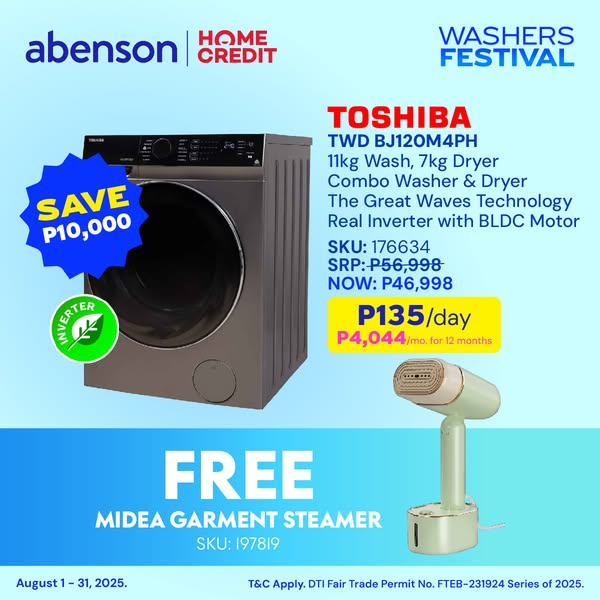 搜索关键词 Abenson washing machine,Home Credit installment,affordable home appliances,washing machine sale,free last payment,electronics store promotion,August 2025 promo,AbotKayang Hulugan,washing machine offer,Home Credit offer优势 Free item with purchase,Installment options with Home Credit,Free Last Monthly Payment with Home Credit