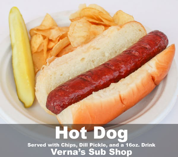 *** Hot Dog served with Chips, Dill Pickle, and a 16oz. Drink - $3.99 Regularly $6.48