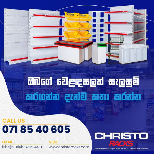 ඔබගේ වෙළඳසැලටත් හොඳම ආයෝජනයක්, සියලුම වර්ගවල සුපර්මාර්කට් රාක්ක, Freezers, Bottle Coolers සහ උපාංග එක වහලක් යටින් ලබාගන්න.