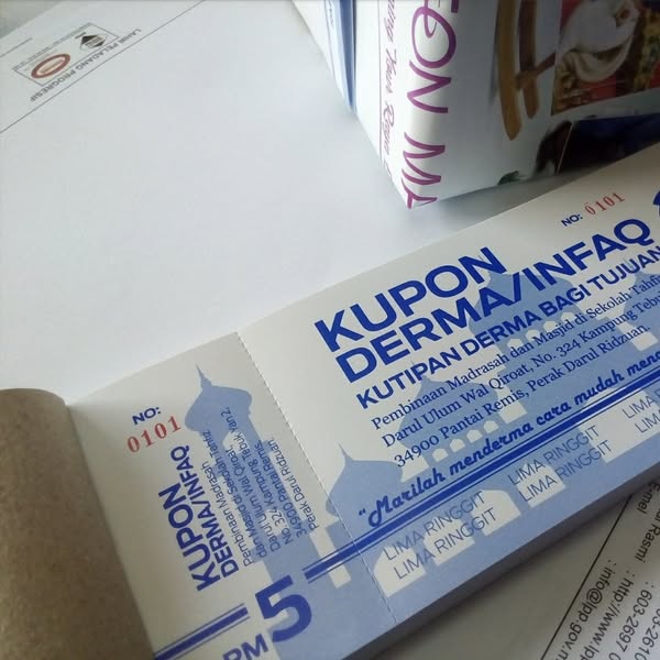 Resit Jualan, Klinik, PIBG, Tiket, Baucer, Derma, MC, DO, Booklet – semua kami cetak sejak 2012!🔥