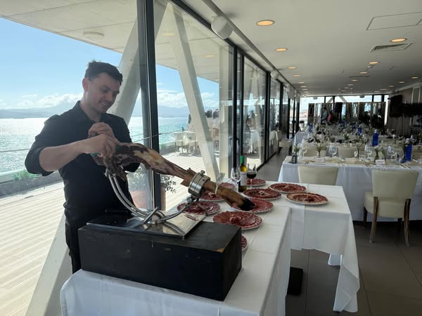 搜索关键词 Iberian ham, ham carving, catering service, Bistro Point, Gibraltar food, AquaTerra Gibraltar, gourmet ham, food experience, event catering, fine dining优势 High-quality Iberian ham,Professional carving service,Positive customer experience (hospitality)