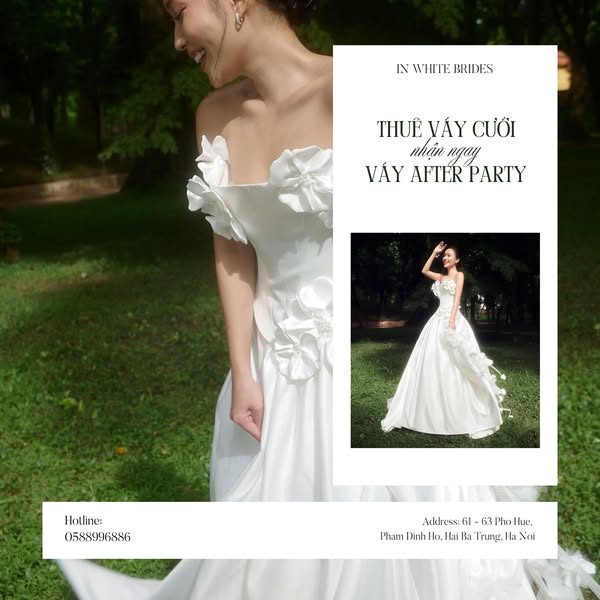 搜索关键词 wedding dress rental, bridal gown promotion, women's day offer, after party dress, reception dress, Hanoi bridal shop, In White Brides, wedding celebration, special discount, bridal design优势 Free After-Party or Reception Dress,Instant Discount Option,High-Quality Designs