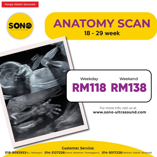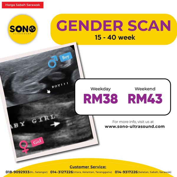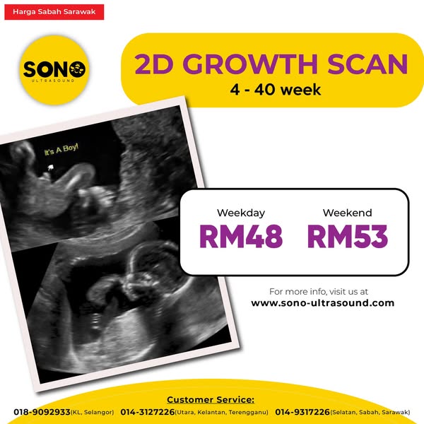 搜索关键词 pregnancy scan, gender scan, 4D scan, 5D scan, ultrasound scan, anatomy scan, baby scan, Sabah Kuching, low price pregnancy scan, pregnancy growth优势 Low price (RM48 Weekday, RM53 Weekend),Variety of scan types (2D, 4D, 5D, NT, Anatomy, etc.),Convenient booking via online, Telegram, and WhatsApp,Multiple locations (Sarawak, Sabah)
