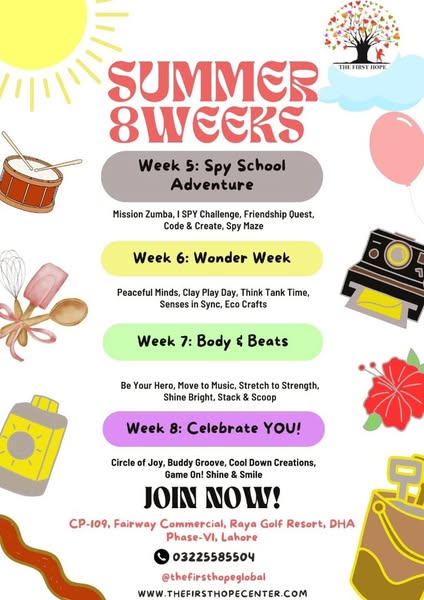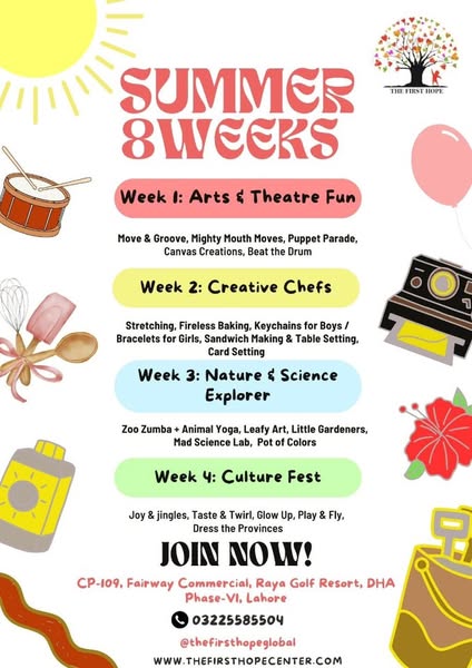 #SummerCamp2025 #KidsActivities #LahoreMoms #TheFirstHopeCentre #CreativeKids #SummerFun #ParentingInLahore #SensoryPlay #KidsInLahore #LearningThroughFun #ChildDevelopment #FunLearning #DHAEvents #ExploreCreateGrow