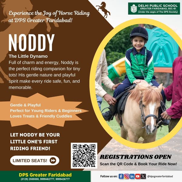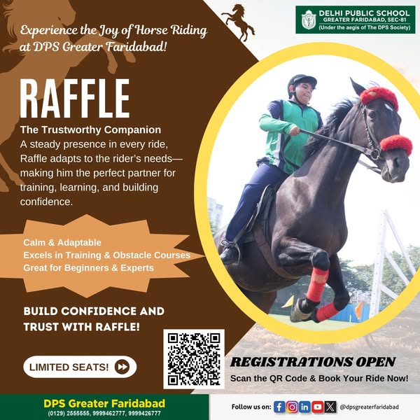 Meet Megha, a symbol of strength and elegance at DPS Greater Faridabad. With a gentle nature and a fearless spirit, she is the perfect companion for young equestrians looking to master the art of horse riding. Join Megha for an unforgettable ride!