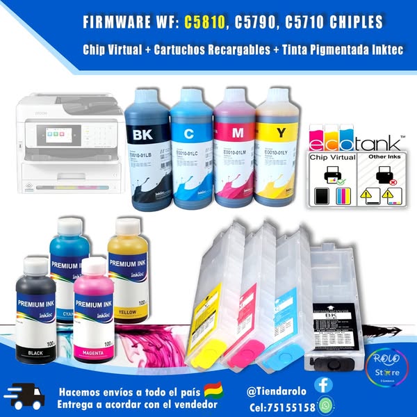 ⚗Tinta para epson workforce Wf-C5790, C5710, C5290, C6590, C529r, C579r, C579Ra, M5299, M5799,TW1,2,3,4🏷