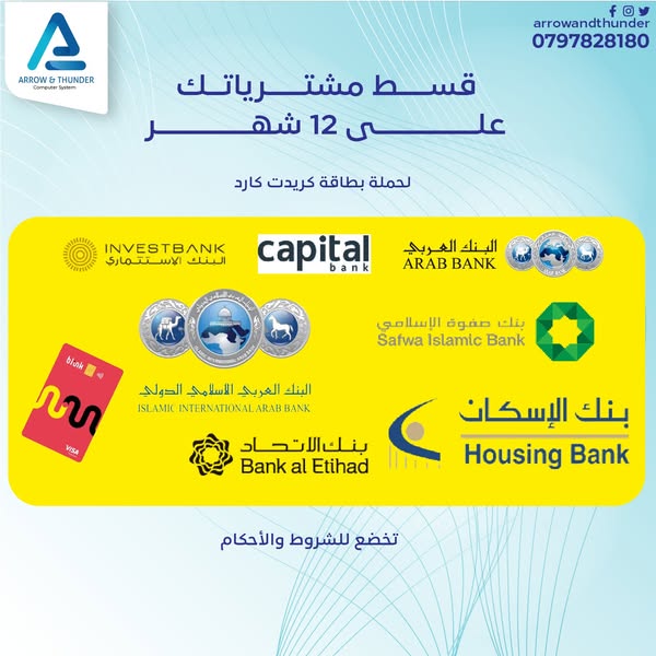 ومتوفر نظام التقسيط وبدون تعقيدات لحملة بطاقات كريدت كارد البنوك التالية :