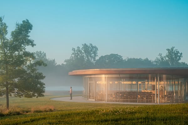 1. The sun fills the sky over Grace Farms. By Vanessa Van Ryzin.