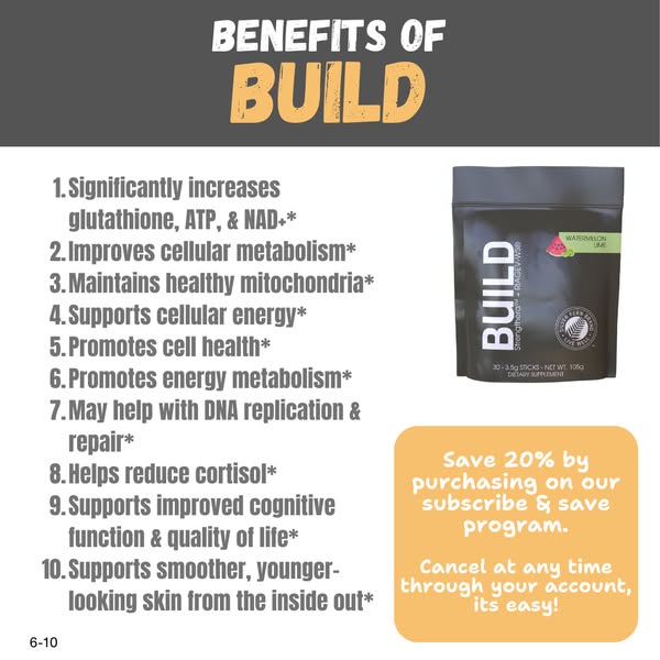 People who take BUILD consistently rave about its benefits—especially those who are active or over 40. If you’re looking for more cellular energy, improved endurance, quicker recovery, or enhanced performance, you’ll love BUILD. And if anti-aging is a priority for you, this product will exceed your expectations.