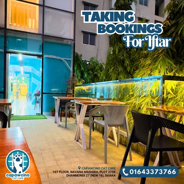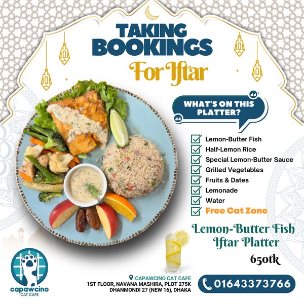 #Iftar #Ramadan #Offer #SpecialOffer #IftarOffer #Dhanmondi #Capawcino #CapawcinoCatCafe #Cafe #RamadanSpecial #RamadanOffer #IftarwithCats #DhakaEats #FoodieDhaka #CatLover #CafeVibes #ReserveNow #IftarBooking #Booking #DhakaIftar #Coffee #Reservation #VisitUs #ReserveNow