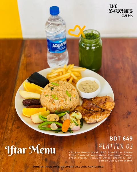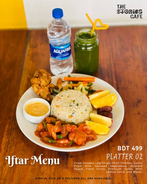 搜索关键词 Ramadan Iftar Dhaka, Iftar Platter Menu, The Stories Cafe, Restaurant Mirpur, Food Delivery Bangladesh, Dine In Iftar, Fried Chicken Ramadan, Ramadan Special Offer, Cafe Iftar Deal, Bangladesh Restaurant优势 Variety of Iftar options,Convenient dine-in, pick-up & delivery,Affordable prices