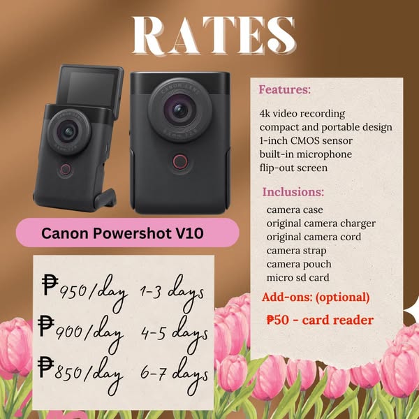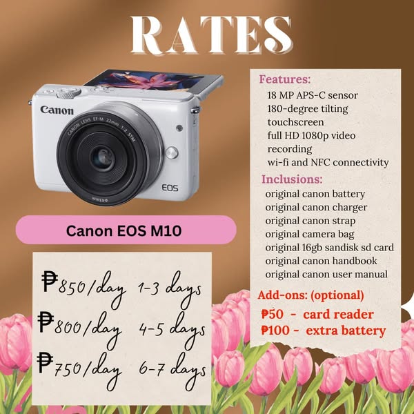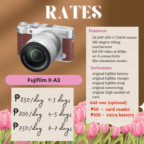 搜索关键词 camera rental baguio, baguio city camera, rent camera philippines, affordable camera rental, professional camera rental, content creation cameras, baguio photography rental, fujifilm sony canon rental, school id camera rental, no deposit camera rental优势 No money deposit,Affordable rates,Flexible rentals,Free basic tutorial,Wide selection of cameras,Valid school IDs accepted