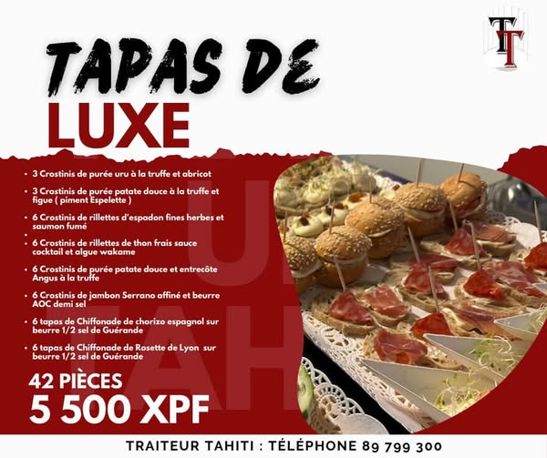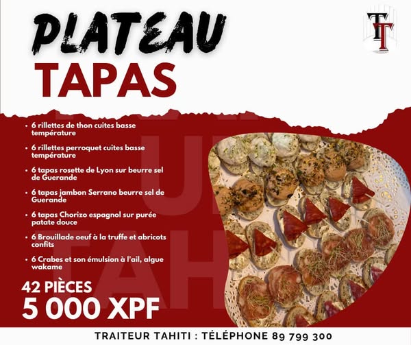 搜索关键词 christmas platter, food catering, tahiti food, tapas offer, holiday platters, punaauia pickup, traiteurtahiti@gmail.com, 89799300, christmas promotion, limited time优势 Festive platters available,Convenient pick-up locations and times,Free TAPAS platter for early orders
