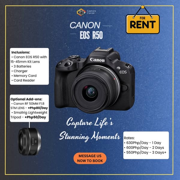 #CaptureCorner #CameraRental #CanonM50MarkII #CanonR50 #MirrorlessCamera #Photography #videography