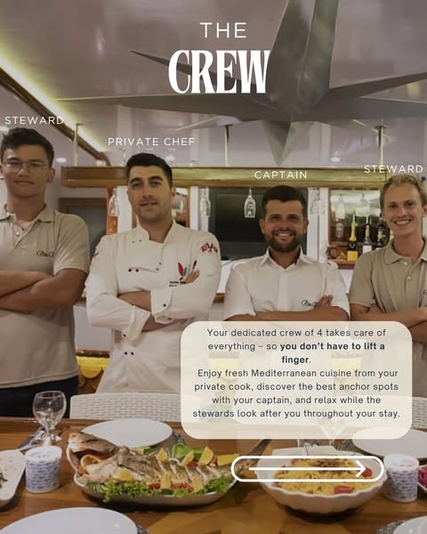 Enjoy a week aboard our Blu Dream Edition – one of our most stunning yachts – with 8 guest capacity, a great captain👨🏻✈️, a Private Chef👨🍳, and two Stewards will be always at your service and all yacht-related costs covered. Only extras: 10% VAT, airport transfers, food & drinks at market prices. 🎉Save 10%! Check available weeks and prices in the last slide :)