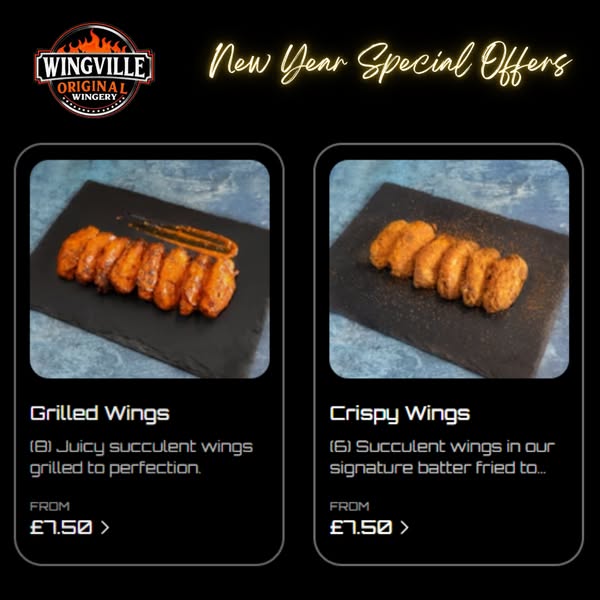 Love wings? You’ll love this! WingVille’s Deluxe Platter is packed with flavour and perfect for sharing: 🍗 24 grilled wings (up to 4 irresistible flavours) 🍟 2 portions of seasoned fries 🌟 2 creamy ranch dips All for just £25! 🚚 Delivery starts at only £2.5, so let us bring the best in Dundee straight to your door. Don’t miss out – 🖱️ Order online now at wingvilleuk.com!