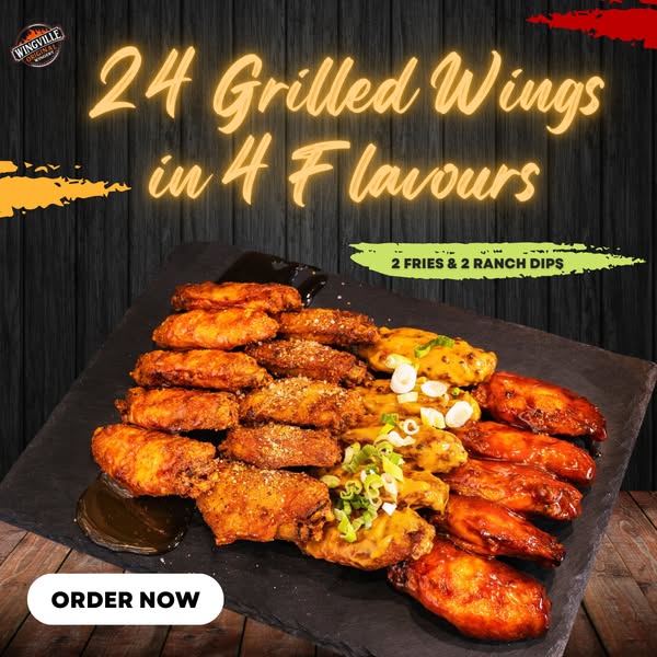 Love wings? You’ll love this! WingVille’s Deluxe Platter is packed with flavour and perfect for sharing: 🍗 24 grilled wings (up to 4 irresistible flavours) 🍟 2 portions of seasoned fries 🌟 2 creamy ranch dips All for just £25! 🚚 Delivery starts at only £2.5, so let us bring the best in Dundee straight to your door. Don’t miss out – 🖱️ Order online now at wingvilleuk.com!