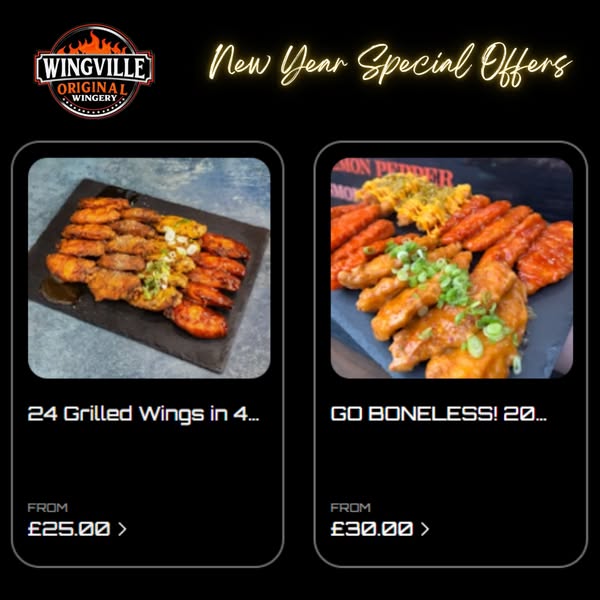 Love wings? You’ll love this! WingVille’s Deluxe Platter is packed with flavour and perfect for sharing: 🍗 24 grilled wings (up to 4 irresistible flavours) 🍟 2 portions of seasoned fries 🌟 2 creamy ranch dips All for just £25! 🚚 Delivery starts at only £2.5, so let us bring the best in Dundee straight to your door. Don’t miss out – 🖱️ Order online now at wingvilleuk.com!