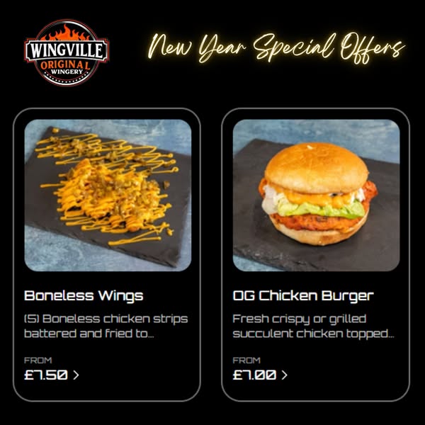 Love wings? You’ll love this! WingVille’s Deluxe Platter is packed with flavour and perfect for sharing: 🍗 24 grilled wings (up to 4 irresistible flavours) 🍟 2 portions of seasoned fries 🌟 2 creamy ranch dips All for just £25! 🚚 Delivery starts at only £2.5, so let us bring the best in Dundee straight to your door. Don’t miss out – 🖱️ Order online now at wingvilleuk.com!