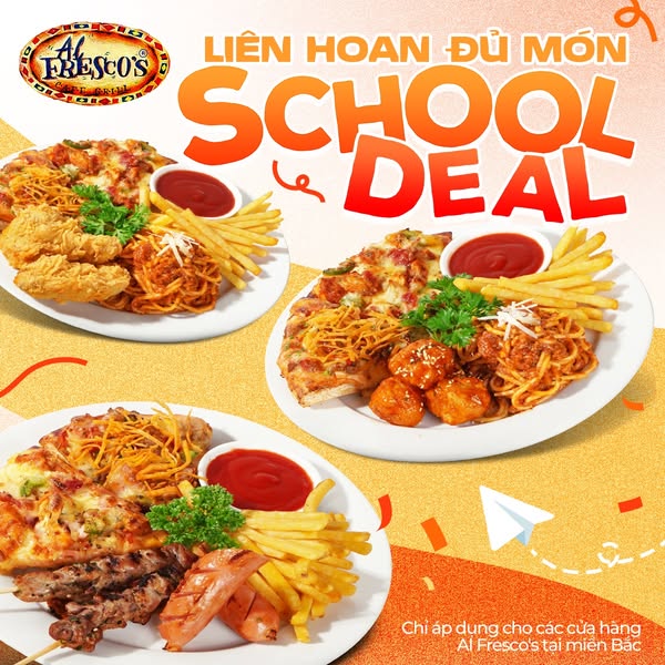搜索关键词 Al Fresco's party, school party, end of year celebration, student meal deal, affordable meal, school event catering, Vietnam restaurant, family restaurant, casual dining, kids menu优势 Affordable price,Variety of options,Suitable for school events