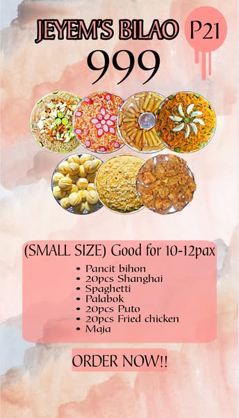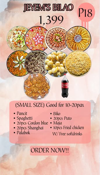 搜索关键词 Bilao food package, customized catering, Taytay Rizal, cash on delivery, Gcash payment, Filipino food, rush order catering, party food, event catering, Jeyem's Bilao优势 Customized food packages,Cash on delivery,Accepts Gcash,Open for rush orders