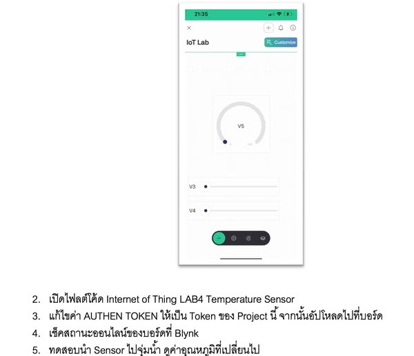 LAB 7 วัดค่าอุณหภูมิของเหลว ตั้งค่าควบคุมได้บนแอพ สั่งเปิดปิดได้ทั้ง Online/Offline