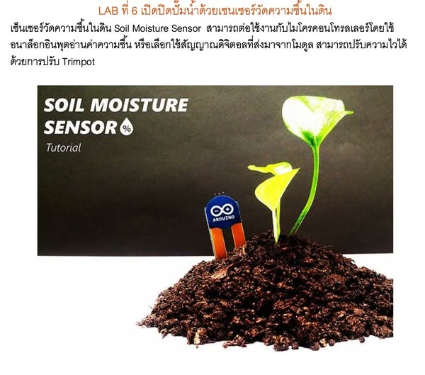 LAB 6 วัดค่าความชื้นในดินแล้วสั่งเปิดปิดปั๊มน้ำ ตั้งค่าควบคุมผ่านแอพ