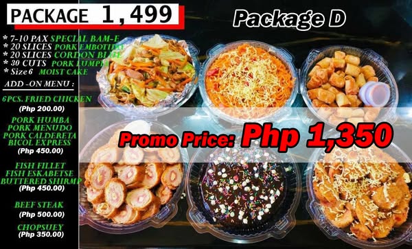 搜索关键词 Cebu food delivery, affordable food package, Filipino cuisine, Cebu Kusina, food trays, lechon package, COD Cebu, porkless menu, rush food order, Davao food delivery优势 Affordable prices,Available everyday,Rush orders accepted,Early reservations accepted,Satisfied customers,Legit Seller,Less hassle,Porkless Menus Offered