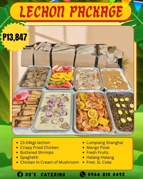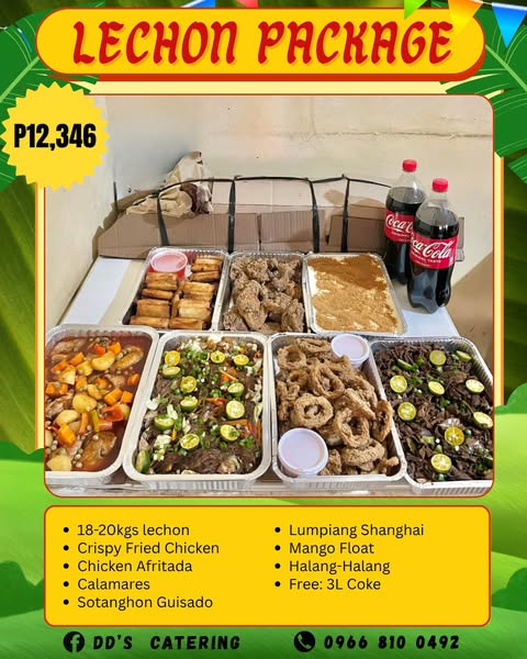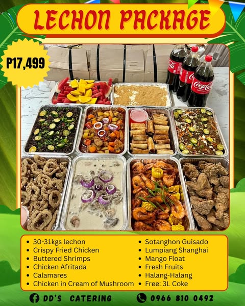 搜索关键词 lechon packages, party food, fiesta food, lechon belly, food catering, Cagayan de Oro, local food, celebration packages, food delivery, pre order food优势 Convenient for celebrations,Variety of menu options,Supports local business